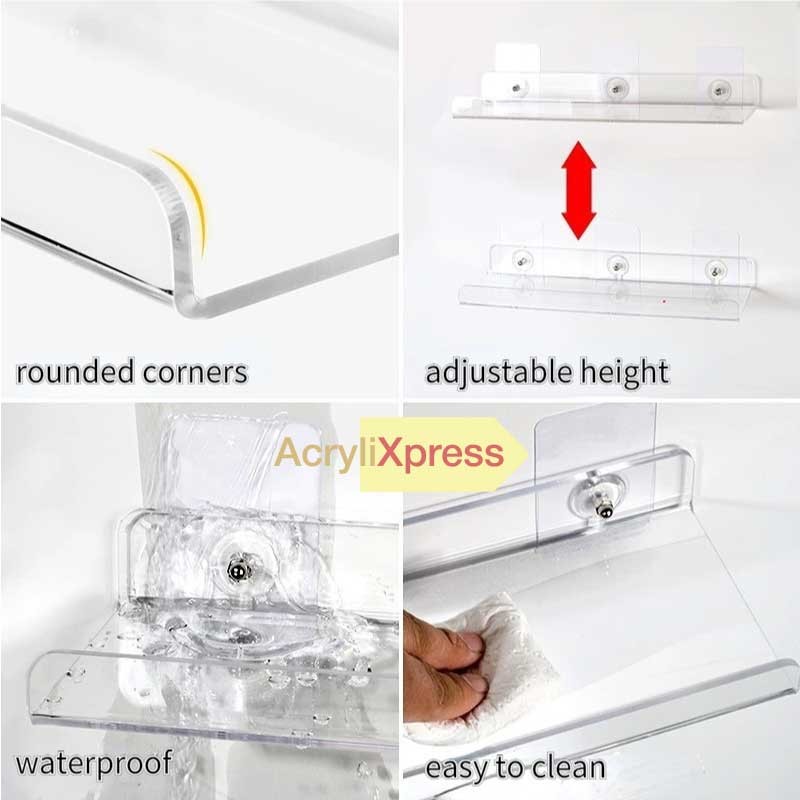 Product Features | Ciri-Ciri Produk:βοΈ No Drill / Tanpa Gerudi β Lekat je terus guna! Tak rosakkan dindingβοΈ Acrylic Gred A (Ketebalan 3mm) β Kuat, jernih & tahan lamaβοΈ Kalis Air & Karat β Sesuai untuk bilik air dan dapurβοΈ Tampung Berat β Boleh letak botol besar, alat makeup, barang dapurβοΈ Pelbagai Kegunaan β Untuk bilik air, dapur, bilik tidur, pejabatβοΈ 2 Reka Bentuk β Bentuk U dan Bentuk LβοΈ Boleh Susun Ikut Ketinggian Sendiri β Fleksibel ikut ruang anda