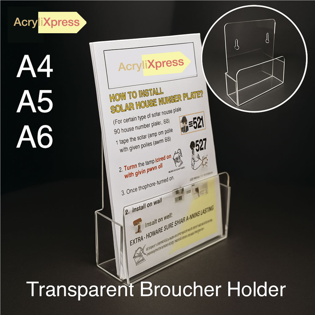 UMAKE Acrylic Ad Brochure Holder Rack Card Display, A4, A5, A6 Plastic Wall Mount Flyer Magazine