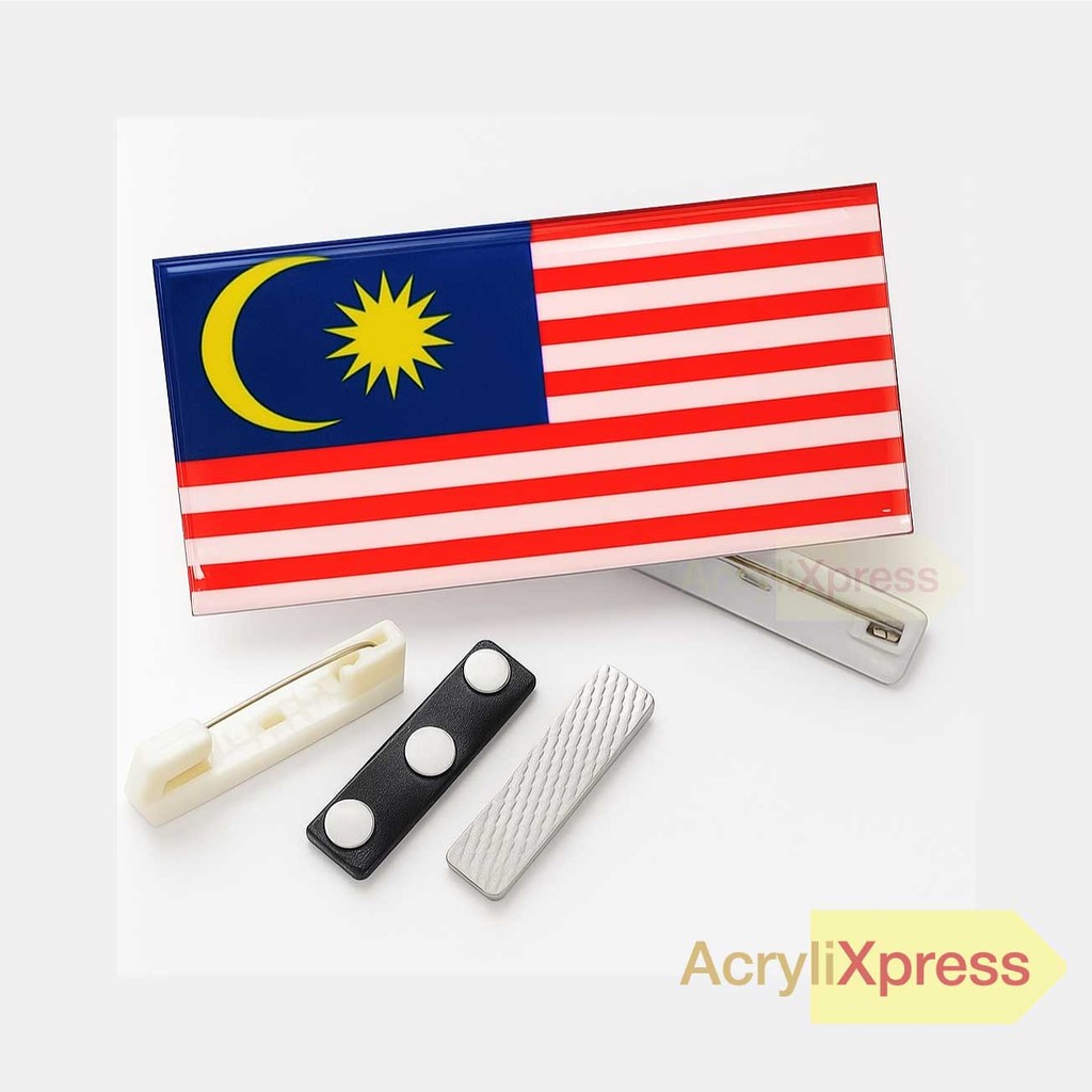 Saiz: 5cm x 2.5cm | Cetakan Berkualiti atas GRADE A Akrilik | Pilihan Magnet atau Pin