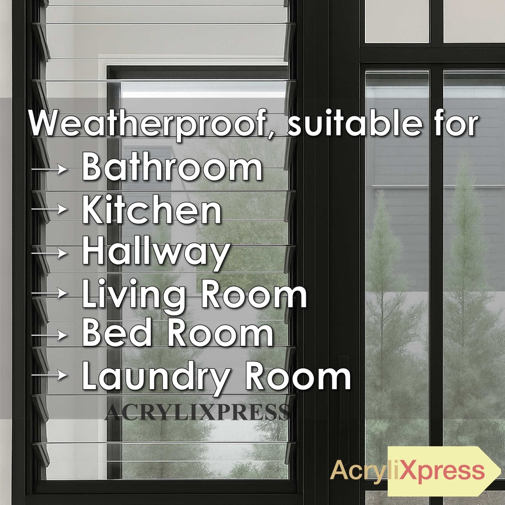 Benefits & Uses:✅ Lighter than glass – easy to install✅ Shatter-resistant – safer for kids✅ Weatherproof & UV resistant – won’t turn yellow under sunlight✅ Suitable for all areas: bathroom, kitchen, living room, bedroom, laundry✅ Available in clear / matte / black finishes for privacy & style✅ Cost-effective long term – durable & low maintenance