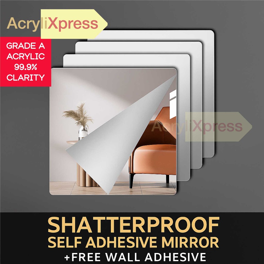 Product SpecificationsMaterial : Premium Acrylic Mirror (Grade A Acrylic, Brighter reflection)Color: Noble SilverStyle: Modern MinimalistSize:20cm*20cm/30cm*30cm/40cm*40cmFunction: Beautify and DecorateNumber of pieces: 1 piece, 2 pieces, 4 piecesApplicable Space: Living Room,Bedroom,Bathroom,Hall,Wall Decoration,Dressing room,Fitting Room....