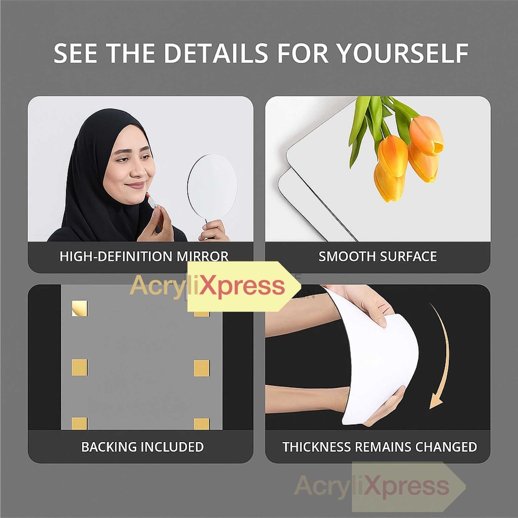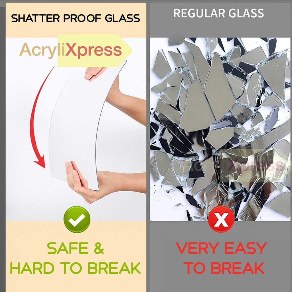 Cermin Akrilik Bukan Kaca β Selamat, ringan & tidak mudah pecah. Sesuai untuk rumah dengan anak kecil.β