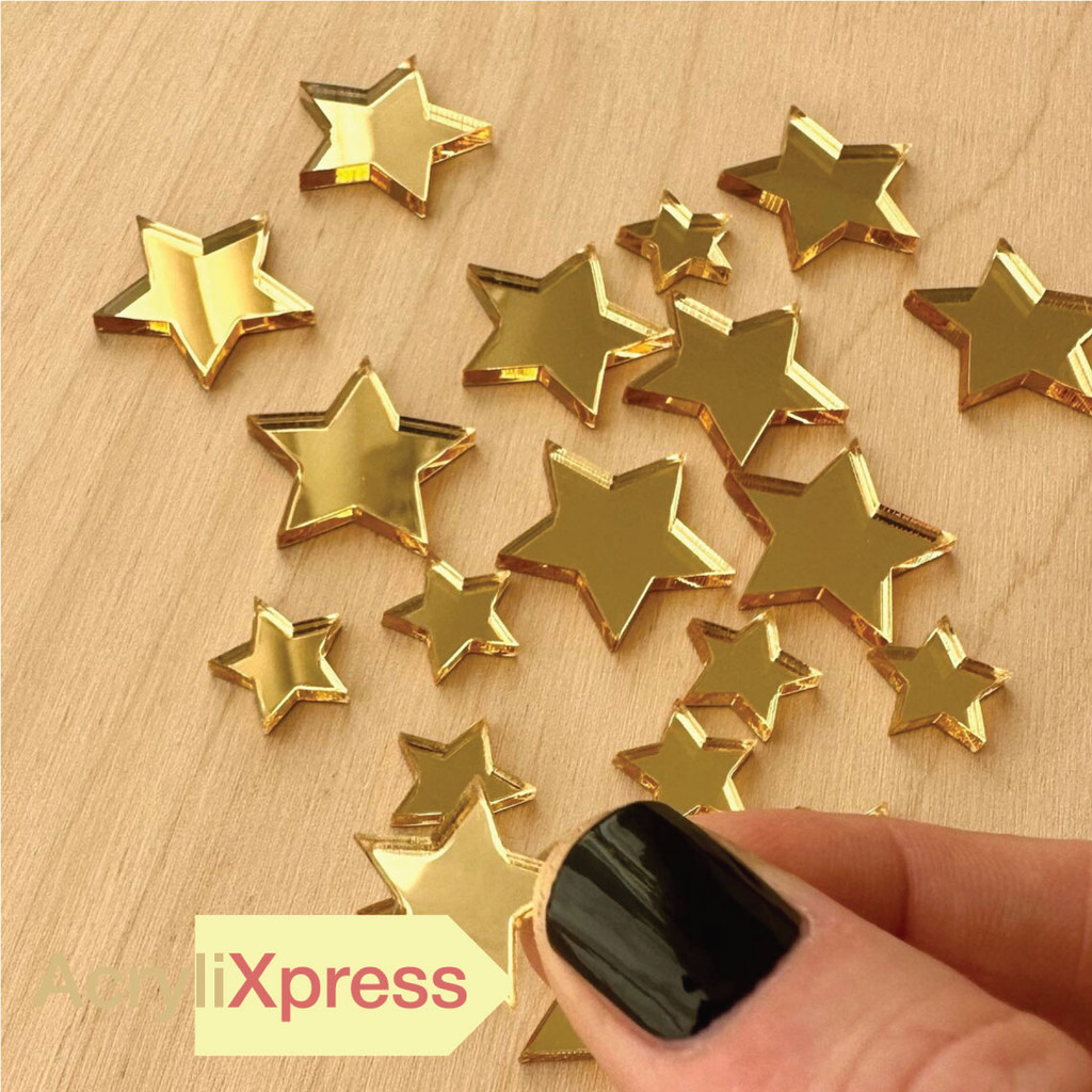 Add a shiny, premium touch to your crafts or decorations! These gold mirrored stars are laser-cut from high-quality 3mm acrylic, perfect for DIY projects, gift boxes, greeting cards, or Christmas decor.