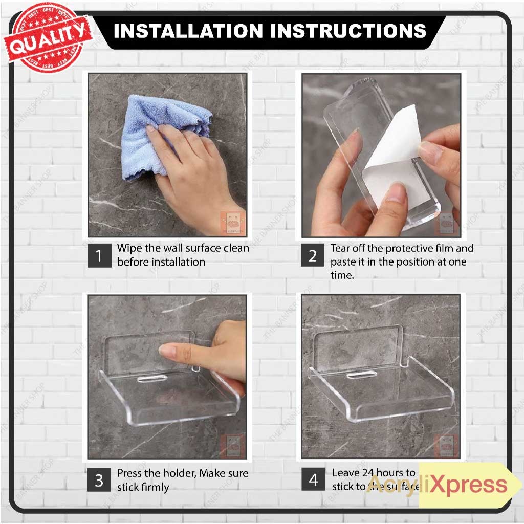✅ Installation method (If install with screws)1) Marking places to drill on wall2) Use 6mm dirll bit to drill 2 holes on wall3) Hang the holder using the screws