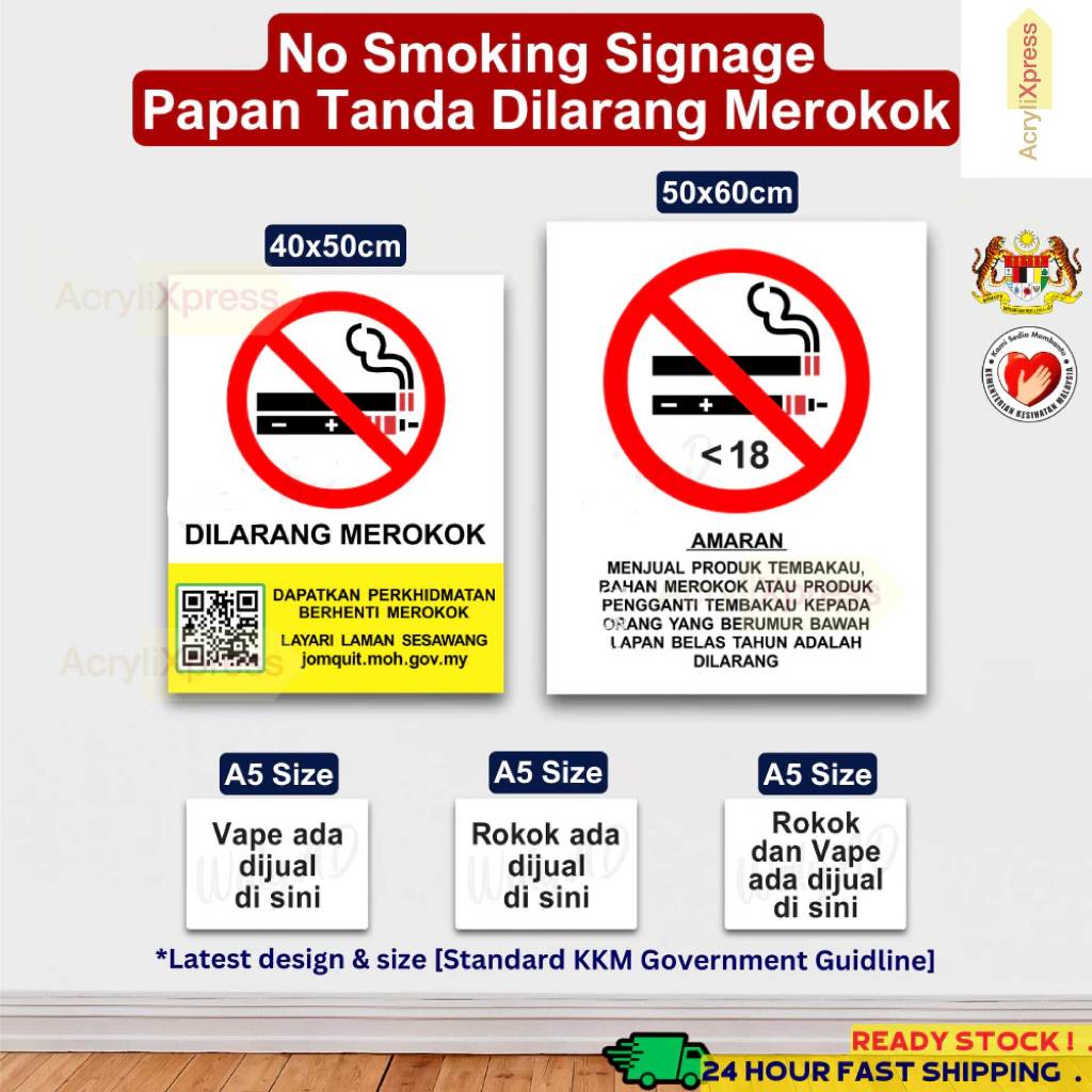 Amaran Menjual XL — RM 24.902025 SMOKING ZON — RM 17.90No Smoking & Vaping — RM 17.902025 No Smoking15x18 — RM 7.902025 No Smoking10x8 — RM 4.902025 No Smoking — RM 17.90