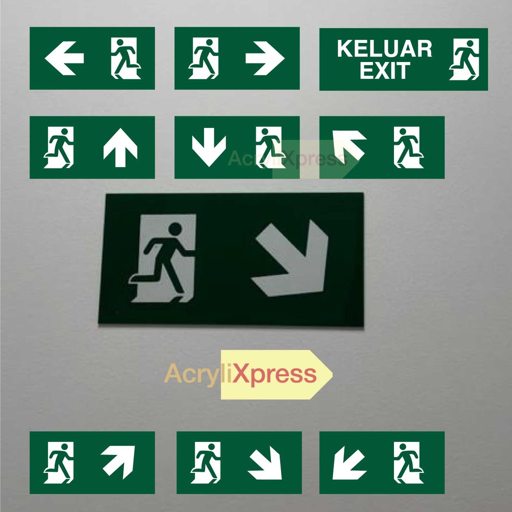 UMAKE Emergency Exit Signs Safety Signs emergency exit Keluar Sign Acrylic Emergency FIRE Exit Signs